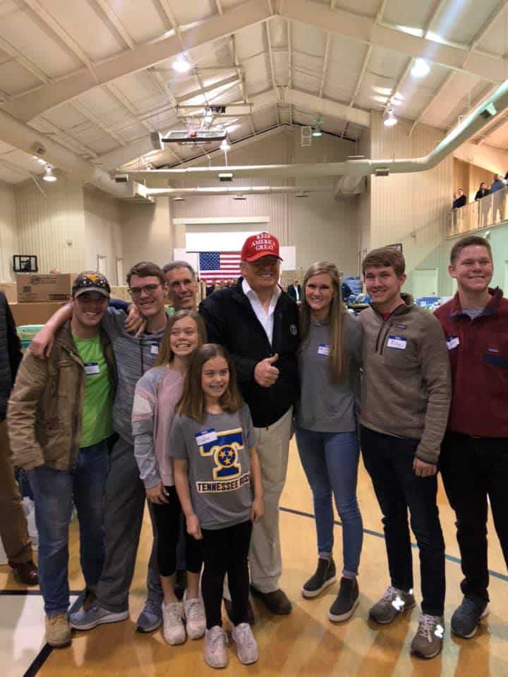 The response to the tornadoes was remarkable. Local volunteers caused traffic jams on Jefferson Avenue, the main street of Cookeville. Tennessee Tech closed for two days to allow faculty, staff, students, and student-athletes to volunteer. The response was so great that volunteers had to be asked to stay away until things could be organized. President Trump even visited the disaster site. A former student and friend got to shake President Trumps hand.