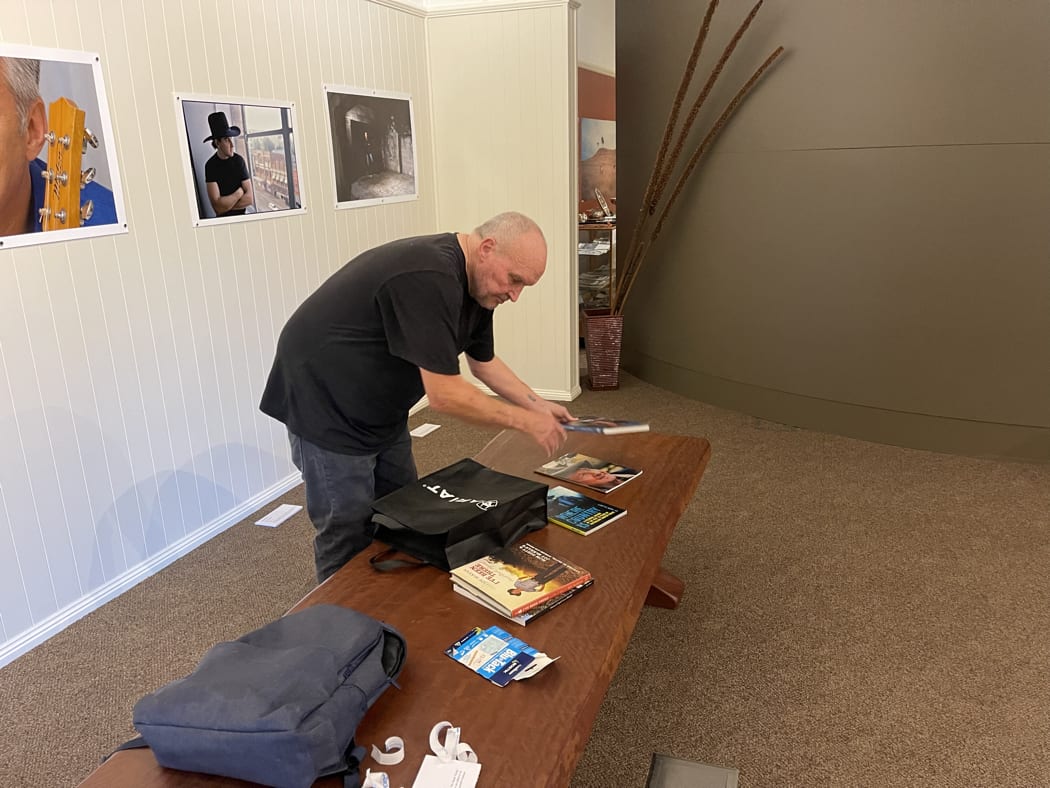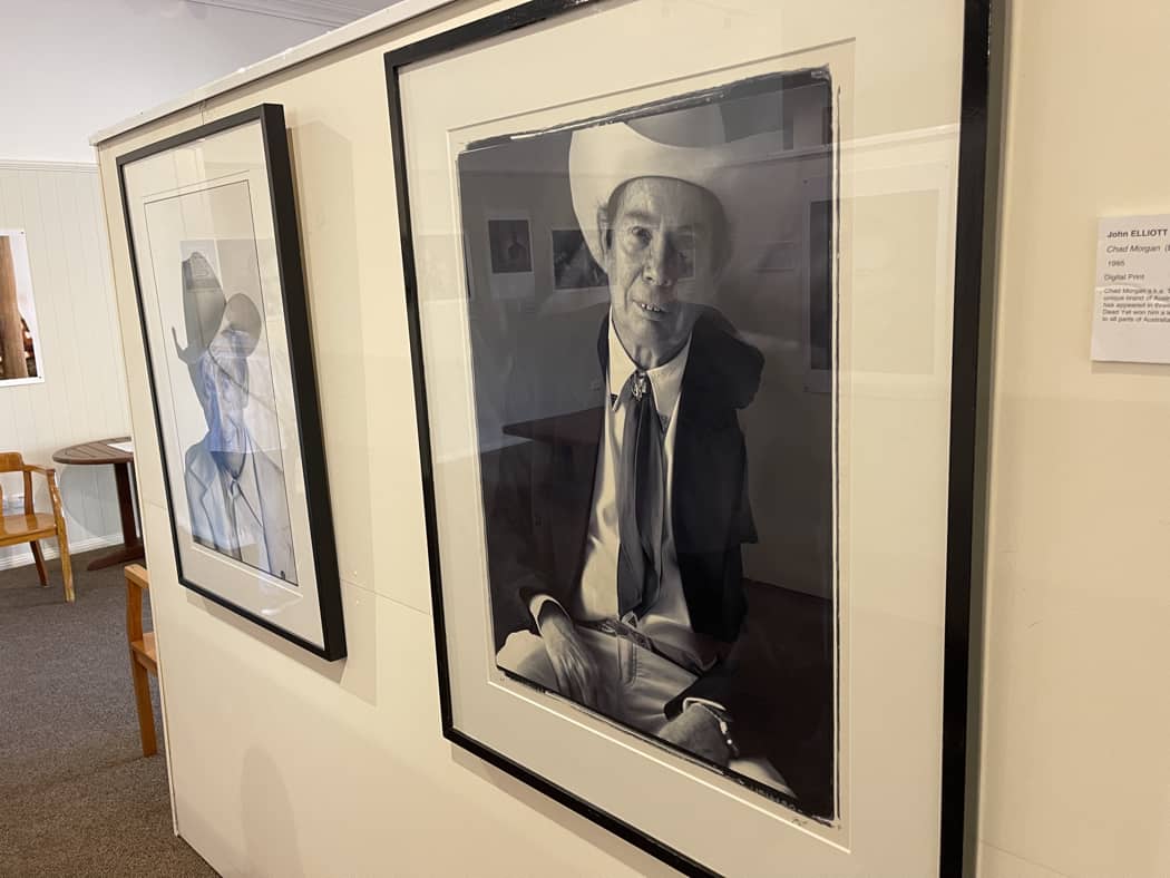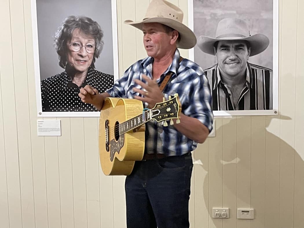 But it was not the R M Williams Centre which attracted us to Eidsvold this time.  Australia’s photographer to the country music industry, John Elliott was setting up an exhibition of some of his extensive country music photo library in the centre.   As well, five time Golden Guitar winner Dean Perrett had agreed to come along and present a couple of what he specialises in, bush ballads to John’s supporters.